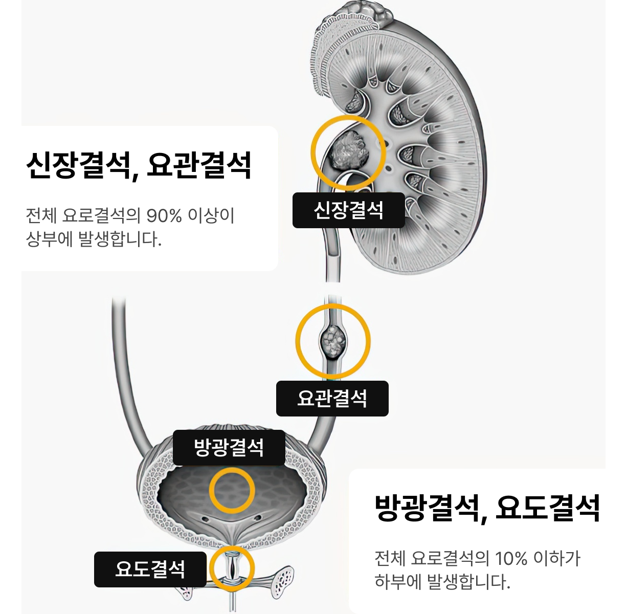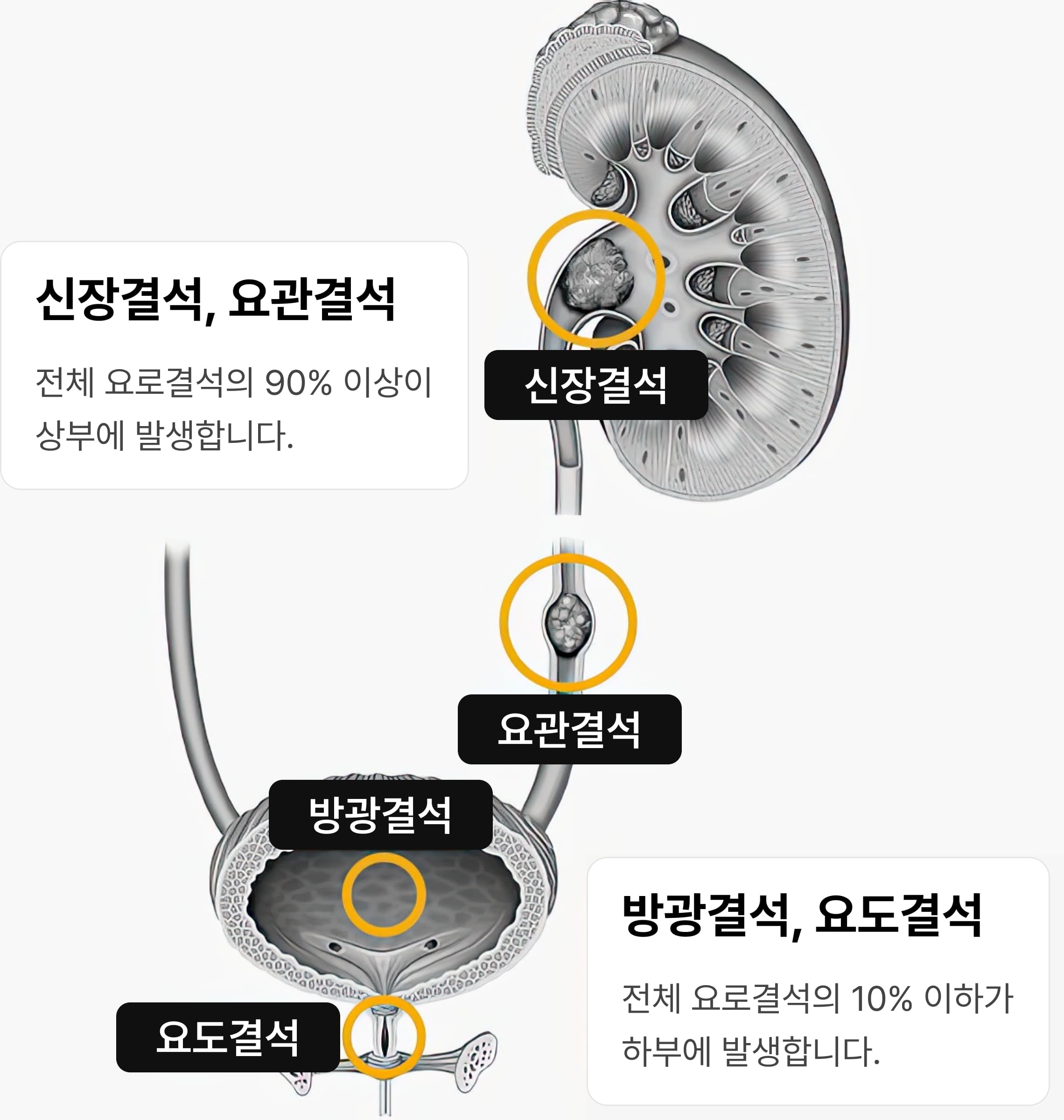 요로결석을 방치하면 결석이 요로를 막아 소변이 제대로 배출되지 않으면서 감염이 생기거나 신장 기능이 점차 나빠질 수 있습니다. 심한 경우에는 신부전 같은 심각한 합병증으로 이어질 수도 있으니 증상이 있거나 결석이 확인되면 빠른 치료가 꼭 필요합니다.